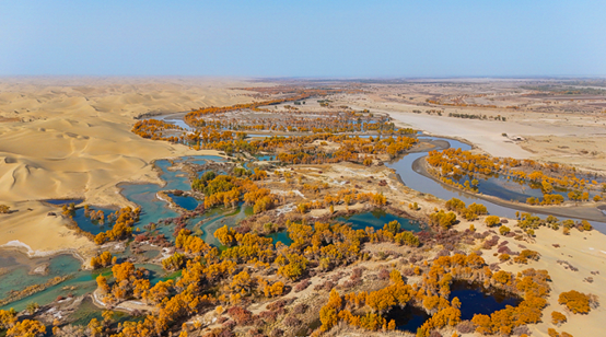 توغراقنىڭ ئالتۇن رەڭگى، قۇم دېڭىزىنىڭ ئەگرى سىزىقى، كۆلنىڭ سۈزۈكلۈكى تەبىئەتنىڭ قۇملۇققا يازغان ئەڭ مۇلايىم مۇھەببەت شېئىرى بولۇپ قالدى. ۋاڭ شىلېي فوتوسى