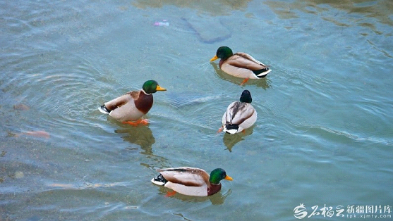 ئالتاينىڭ قىش كۈنلىرىدىكى تېيىز سۇ قولتۇقىدا، بىرنەچچە يېشىل باش ئۆردەك بىر-بىرىگە ھەمراھ بولۇپ ئۈزۈپ، سۈپسۈزۈك سۇدا ياي ھاسىل قىلغانىدى، بۇ، قىش مەنزىرىسىدىكى جانلىق رەڭ بۆلەكلىرى ئىدى.