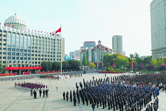 10 - ئاينىڭ 1 - كۈنى، ئاپتونوم رايون ئۈرۈمچىدە داغدۇغىلىق دۆلەت بايرىقى چىقىرىش مۇراسىمى ئۆتكۈزۈپ، جۇڭخۇا خەلق جۇمھۇرىيىتى قۇرۇلغانلىقىنىڭ 76 يىللىقىنى تەبرىكلىدى. □ئانار بۇلۇت\شىنجاڭ گېزىتى مۇخبىرى شيې لۇڭ فوتوسى
