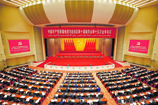 يىغىندا مۇنداق تەكىتلەندى: «15 - بەش يىل» مەزگىلىدىكى شىنجاڭنىڭ ئىقتىسادىي، ئىجتىمائىي تەرەققىياتىدا، ماركسىزم - لېنىنىزم، ماۋ زېدۇڭ ئىدىيەسى، دېڭ شياۋپىڭ نەزەرىيەسى، «ئۈچكە ۋەكىللىك قىلىش» مۇھىم ئىدىيەسى، ئىلمىي تەرەققىيات قارىشىدا چىڭ تۇرۇپ، شى جىنپىڭ يېڭى دەۋر جۇڭگوچە سوتسىيالىزم ئىدىيەسىنى ئومۇميۈزلۈك ئىزچىللاشتۇرۇپ، پارتىيە 20 - قۇرۇلتىيى ۋە 20 - نۆۋەتلىك مەركىزىي كومىتېتىنىڭ ھەر قېتىملىق ئومۇمىي يىغىنىنىڭ روھىنى چوڭقۇر ئىزچىللاشتۇرۇپ، ئەمەلىيلەشتۈرۈپ، باش شۇجى شى جىنپىڭنىڭ شىنجاڭ خىزمىتى توغرىسىدىكى مۇھىم سۆزى، مۇھىم يوليورۇقى، تەستىقىي يوليورۇقىنىڭ روھىنى ئىزچىللاشتۇرۇپ، ئەمەلىيلەشتۈرۈپ، «بەشنى بىر گەۋدىلەشتۈرۈش» ئومۇمىي ئورۇنلاشتۇرمىسىنى بىرتۇتاش پىلانلاپ ئالغا سىلجىتىپ، «تۆت ئومۇميۈزلۈك» ئىستراتېگىيەلىك ئورۇنلاشتۇرمىسىنى ماس ئالغا سىلجىتىپ، ئاپتونوم رايون قۇرۇلغانلىقىنىڭ 70 يىللىقىنى يېڭى باشلىنىش نۇقتىسى قىلىپ، يېڭى تەرەققىيات ئىدىيەسى ۋە يېڭى دەۋردىكى پارتىيەنىڭ شىنجاڭنى ئىدارە قىلىش تەدبىرىنى تولۇق، دەل جايىدا، ئومۇميۈزلۈك ئىزچىللاشتۇرۇپ، جەمئىيەت مۇقىملىقى ۋە ئەبەدىي ئەمىنلىكتىن ئىبارەت خىزمەت باش نىشانىنى مەھكەم ئىگىلەپ، جۇڭخۇا مىللىتى ئورتاق گەۋدىسى ئېڭىنى مۇستەھكەملەش، جۇڭخۇا مىللىتى ئورتاق گەۋدىسى قۇرۇلۇشىنى ئالغا سىلجىتىشنى زىچ چۆرىدەپ، شىنجاڭنى قانۇن بويىچە ئىدارە قىلىش، شىنجاڭنى ئىتتىپاقلىشىپ مۇقىم قىلىش، شىنجاڭنى مەدەنىيەت ئارقىلىق ئوزۇقلاندۇرۇش، خەلقنى بېيىتىپ شىنجاڭنى روناق تاپتۇرۇش، شىنجاڭنى ئۇزاققىچە گۈللەندۈرۈشتە چىڭ تۇرۇپ، شىنجاڭنىڭ دۆلەت ئومۇملۇقىدىكى «بەش چوڭ ئىستراتېگىيەلىك ئورۇن بېكىتمىسى»نى چىڭ كۆزلەپ، مۇقىملىق ئاساسىدا ئىلگىرىلەش خىزمەت باش رىتىمىدا چىڭ تۇرۇپ، تەرەققىيات بىلەن خەۋپسىزلىكنى بىرتۇتاش پىلانلاپ، ئىقتىسادىي قۇرۇلۇشنى مەركەز، يۇقىرى سۈپەتلىك تەرەققىياتقا تۈرتكە بولۇشنى باش تېما، ئىسلاھ قىلىش، يېڭىلىق يارىتىشنى تۈپ ھەرىكەتلەندۈرگۈچى كۈچ، خەلقنىڭ كۈنسېرى ئېشىۋاتقان گۈزەل تۇرمۇش ئېھتىياجىنى قاندۇرۇشنى تۈپ مەقسەت، پارتىيەنى ئومۇميۈزلۈك قاتتىق ئىدارە قىلىشنى تۈپ كاپالەت قىلىشتا چىڭ تۇرۇپ، ئىقتىسادتا سۈپەتنى ئۈنۈملۈك ئۆستۈرۈش بىلەن مىقدارنى مۇۋاپىق ئاشۇرۇشقا تۈرتكە بولۇپ، ئادەمنىڭ ئەتراپلىق يېتىلىشىگە، ھەر مىللەت ئاممىنىڭ ئورتاق بېيىشقا قاراپ پۇختا قەدەم تاشلىشىغا تۈرتكە بولۇپ، پۈتۈن مەملىكەت بىلەن ماس قەدەمدە سوتسىيالىستىك زامانىۋىلاشتۇرۇشنى ئاساسىي جەھەتتىن ئىشقا ئاشۇرۇشتا ھەل قىلغۇچ ئىلگىرىلەشنى قولغا كەلتۈرۈشكە ھەقىقىي كاپالەتلىك قىلىش كېرەك.