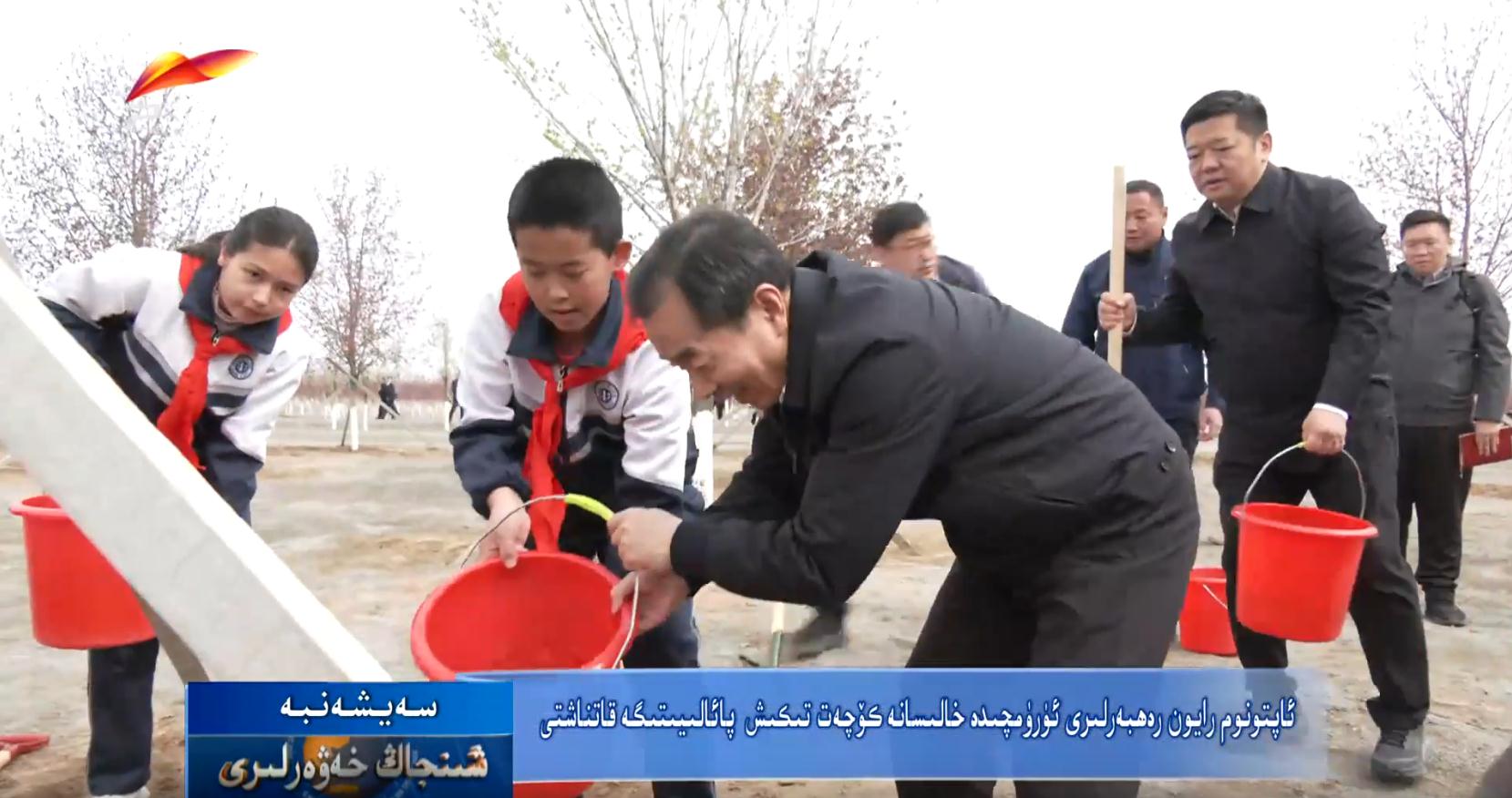 ئاپتونوم رايون رەھبەرلىرى ئۈرۈمچىدە خالىسانە كۆچەت تىكىش پائالىيىتىگە قاتناشتى