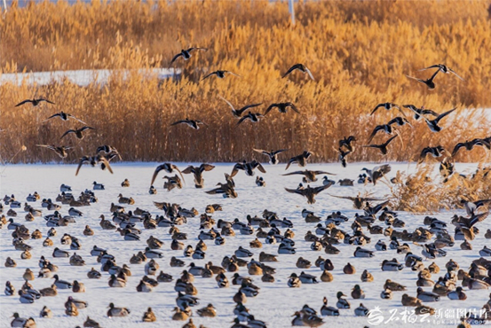 يېقىندا، قاراماي شەھەر رايونىنىڭ جەنۇبىي شەھەر ئەتراپىدىكى گۇخەي ئېكولوگىيە باغچىسىدا توپ-توپ ھاڭگىرت ۋە يېشىل باش ئۆردەك كۆكتە پەرۋاز قىلدى. 1-ئاينىڭ ئوتتۇرىلىرى كىرگەندىن كېيىن، تېمپېراتۇرا تېز تۆۋەنلەپ، نەچچە يۈز ھاڭگىرت ۋە يېشىل باش ئۆردەك قار-مۇز ئارىسىدا ياشاپ، قومۇشلۇقتا ئەركىن ئۈزۈپ، قار-مۇز دۇنياسىغا كىرىپ كەلدى. ھاڭگىرت ۋە يېشىل باش ئۆردەك دۆلەتنىڭ «مۇھىم ئېكولوگىيە، ئىلىم-پەن، جەمئىيەت قىممىتى بار» قوغدىلىدىغان ھايۋىنى ھېسابلىنىدۇ. ئالاقىدار تارماقلار تاقابىل تۇرۇش تەدبىرلىرىنى قوللىنىپ، ياۋايى قۇشلارنى قوغداشنى كۈچەيتىپ، بۇ قۇشلارغا ياخشى ياشاش مۇھىتى يارىتىپ بەردى. بۇ يىل قىش كىرگەندىن بۇيان، قاراماي شەھىرىنىڭ جەنۇبىي شەھەر ئەتراپىدا تۇنجى قېتىم ئەڭ كۆپ ساندا ھاڭگىرت ۋە يېشىل باش ئۆردەك پەيدا بولدى.