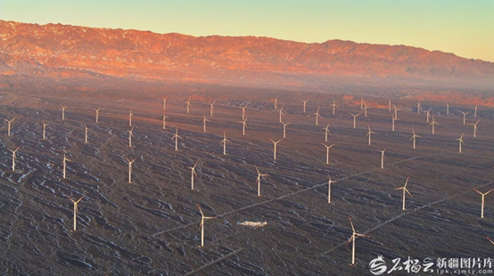 2-ئاينىڭ 3-كۈنى، شىنجاڭ ئىشلەپچىقىرىش-قۇرۇلۇش بىڭتۇەنى 6-شى بېيتاشەن تېغى چارۋىچىلىق مەيدانىنىڭ شامال ئېنېرگىيەسى-يورۇقلۇق ۋولت ئېلېكتىر ئىستانسىسىغا بوشلۇقتىن نەزەر.