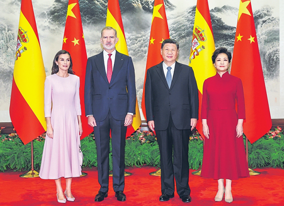 شى جىنپىڭ پادىشاھ فىلىپ − 6نىڭ جۇڭگوغا زىيارەتكە كەلگەنلىكىنى قارشى ئالدى ھەم مۇنداق كۆرسەتتى: جۇڭگو بىلەن ئىسپانىيە چوڭقۇر تارىخىي مەدەنىيەت ئاساسىغا ئىگە. دىپلوماتىك مۇناسىۋەت ئورناتقان 50 نەچچە يىلدىن بۇيان، ئىككى دۆلەت ئىستراتېگىيەلىك يۈكسەكلىك ۋە كەلگۈسى نۇقتىدىن ئىككى تەرەپ مۇناسىۋىتىگە مۇئامىلە قىلىش ۋە ئۇنى راۋاجلاندۇرۇشتا چىڭ تۇرۇپ، ئۆزئارا ھۆرمەت قىلىپ، ئۆزئارا قوللاپ، بىر - بىرىنى ئۇتۇق قازاندۇرۇپ، ئوخشاش بولمىغان تارىخىي مەدەنىيەت، ئوخشاش بولمىغان جەمئىيەت تۈزۈمىدىكى دۆلەتلەر دوستانە ئۆتۈش، تەرەققىيات ئۈستىدە ئورتاق ئىزدىنىشنىڭ ئۈلگىسىنى تىكلىدى، شۇنداقلا دۇنياۋى ئېچىۋېتىش، ھەمكارلىشىشقا تۈرتكە بولۇش، خەلقئارا ئادىللىق ۋە ھەققانىيلىقنى قوغداشتا مۇھىم رولىنى جارى قىلدۇردى. ئىسپانىيە خان جەمەتى جۇڭگو - ئىسپانىيە مۇناسىۋىتىنىڭ تەرەققىياتىغا گەۋدىلىك تۆھپە قوشتى. ئىككى دۆلەت ئومۇميۈزلۈك ئىستراتېگىيەلىك ھەمراھلىق مۇناسىۋىتى ئورناتقانلىقىنىڭ 20 يىللىقىنى كۈتۈۋېلىش پەيتىدە، پادىشاھ فىلىپ − 6نىڭ جۇڭگودا دۆلەت ئىشلىرى زىيارىتىدە بولغانلىقى ئىككى دۆلەتنىڭ دوستانە ھەمكارلىقىنىڭ ئۈزلۈكسىز ئالغا قاراپ تەرەققىي قىلىشىغا تۈرتكە بولۇشتا مۇھىم ئەھمىيەتكە ئىگە.