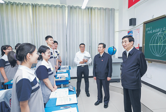 جۇڭگو كوممۇنىستىك پارتىيەسى مەركىزىي كومىتېتى سىياسىي بىيۇروسى دائىمىي كومىتېتىنىڭ ئەزاسى، مەملىكەتلىك سىياسىي كېڭەشنىڭ رەئىسى، مەركەز ۋەكىللەر ئۆمىكىنىڭ ئۆمەك باشلىقى ۋاڭ خۇنىڭ 1 - شۆبە ئۆمەكنى باشلاپ بايىنغولىن موڭغۇل ئاپتونوم ئوبلاستى كورلا شەھەرلىك 23 - ئوتتۇرا مەكتەپ، بايىنغولىن ئوبلاستلىق خەلق دوختۇرخانىسى، ئاۋات يېزىسى ئۇششاقتېرەك كەنتىگە بېرىپ، شىنجاڭغا مائارىپ ئارقىلىق ياردەم بېرىش، شىنجاڭغا داۋالاش ئارقىلىق ياردەم بېرىش، يېزا - كەنتلەرنىڭ كەسىپ تەرەققىياتى ۋە ئاممىنىڭ ئىشلەپچىقىرىش، تۇرمۇش ئەھۋالىنى ئىگىلىدى. ئۇ مۇنداق بىلدۈردى: ئەخلاق ئارقىلىق ئادەم تەربىيەلەشتە چىڭ تۇرۇپ، شىنجاڭدا، بولۇپمۇ جەنۇبىي شىنجاڭدا ئاساس مائارىپنى ياخشى يولغا قويۇپ، دۆلەت ئورتاق تىل - يېزىقى مائارىپىنى كۈچەيتىپ، ياش - ئۆسمۈرلەرنى جۇڭخۇا مىللىتى ئورتاق گەۋدىسى ئېڭىنى مۇستەھكەملەشكە يېتەكلەش كېرەك. داۋالاش - ساقلىقنى ساقلاش سەۋىيەسىنى ئۆستۈرۈپ، ھەر مىللەت خەلقنىڭ ھاياتى ۋە ساغلاملىقىنى ياخشى قوغداش كېرەك. يېزا - كەنتلەرنى گۈللەندۈرۈشنى ئالغا سىلجىتىپ، ھەر مىللەت ئاممىنىڭ كىرىمىنى ئاشۇرۇپ بېيىشىغا كۈچ قوشۇش كېرەك.